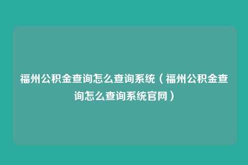 福州公积金查询方法