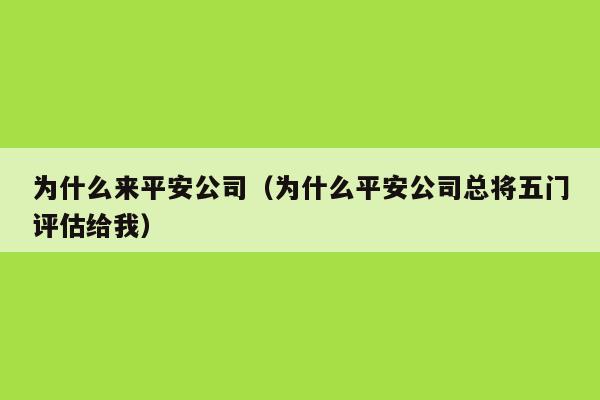 为什么到中国平安公司上班?